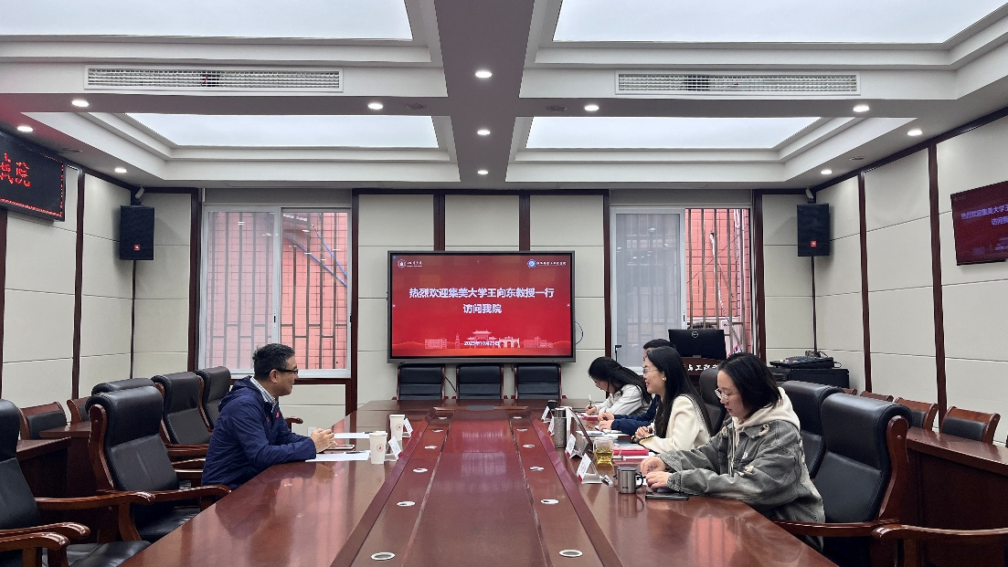 杨璐铭教授课题组展开了深入的学术交流。会谈在望江校区纺工附楼205会议室举行。