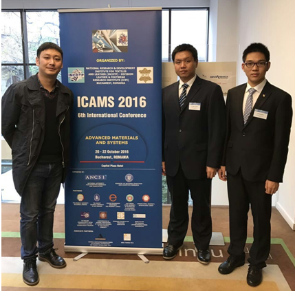 陈武勇教授课题组周晋老师及博士研究生张金伟、吴佳城出席由罗马尼亚国家皮革与纺织品发展研究院、布加勒斯特制革与制鞋研究所和罗马尼亚教育部主办的第六届先进材料与系统国际会议(ICAMS),并以大会宣讲及海报展示的方式发表研究论文3篇。ICAMS会议每两年在罗马利亚首都布加勒斯特举行,本次会议有来自欧洲和亚洲的150多位科学家和工程技术人员参会。