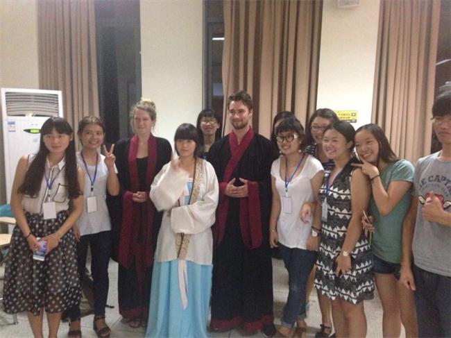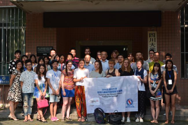 轻纺与食品学院交流营开营仪式,赵毅书记、刘晓虎副书记、何强副院长、肖凯副院长、张皋鹏副教授和祝蔚老师参加了仪式,何强副院长代表学院致辞,介绍了学院的基本情况和交流营的大致安排,并祝愿营员们在这期间能有所收获。简短的开营仪式后,中外营员们进行了风采展示,通过图片、视频以及实物展示,将自己学习和研究的课题做了介绍,让彼此对专业学习情况有一个大致的了解。下午,由服装与服饰专业负责人张皋鹏副教授给大家做了精彩的《西南少数民族服饰》讲座,图文并茂,营员们表示收获很大。课程结束后,荷方的营员还去参观了IFS和春熙路,品尝了本地小吃。晚上,在江安校区综合楼B105来自川大的同学们为荷兰的小伙伴们准备了一场中国风Party。唯美的汉服表演将我们带回到几千年那个神奇的王朝,女子款款而出,男子巍巍而立,一场视觉的盛宴缓缓展开;优雅的茶艺展示让荷兰的小伙伴们惊叹不已,他们静静地聆听着悠悠古琴,品味着茶香余绕唇间的淡淡滋味;欢乐的电影模仿环节一下子将活动的气氛拉到了小高潮,浪漫的泰坦尼克悄然响起,同学们深情的表演让人拍手称快;皮影《佳人曲》更是另一波的中国风来袭,一则凄美的爱情故事,让在场的人都感动不已。川大的同学们卖力地表演,只为将最好的一面展示给国外友人。美丽俏佳人,情深帝王心,小小的皮影生动地为我们再现了那个属于历史的美好回忆;一曲周杰伦的《皮影戏》顿时high爆全场,灵动的小人物伴着欢快的旋律在荧幕上跳着disco,同学们好奇不已,纷纷上来比划,川大的同学们热情地为他们讲解,现场的气氛达到高潮;最后的欢愉时刻,川大的同学为荷兰的小伙伴们一一着上汉装,作揖拜礼,回味古味。快乐的Party降下帷幕,然而留在同学们之间的情谊却将永存。