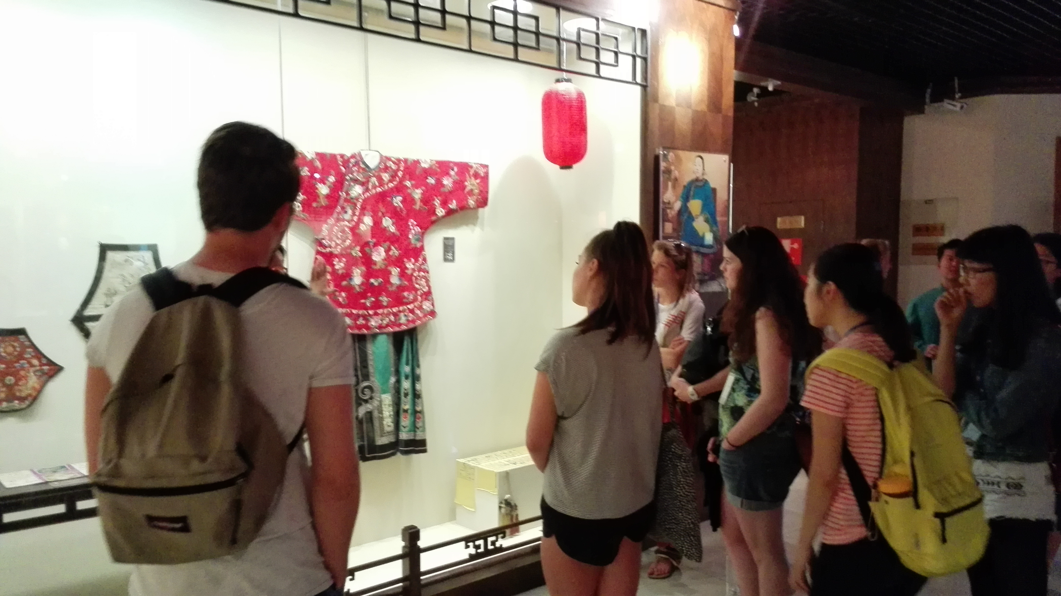 博物馆,并对其中的展品产生了浓厚兴趣,尤其是少数民族服饰。下午13点30分,一行人抵达江安校区。首先,邀请Zuyd University的9名交流生去邮寄寄送明信片;然后交流营到达综合楼B508进行面对面的交流,并对此次交流活动的日程安排进行讲解和调整。在此次面对面交流中,双方就接下来的日程安排进行商讨并达成一致。会面中大家对上午的参观进行了深度的交流,双方在互动中产生了浓厚的情谊。