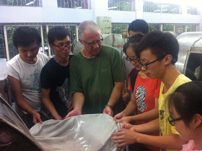 制革方向的本科生对制革过程有了更为深入的了解,学习到了一种可以改善成革质量的浸灰新技术。与此同时,在Daniel的引导下,同学们提高了自己的专业英语应用水平,并感受了异域文化。课余时间,同学们还自发与Daniel进行游戏、共进午餐,同时就未来的择业、就业等问题与其交流意见。