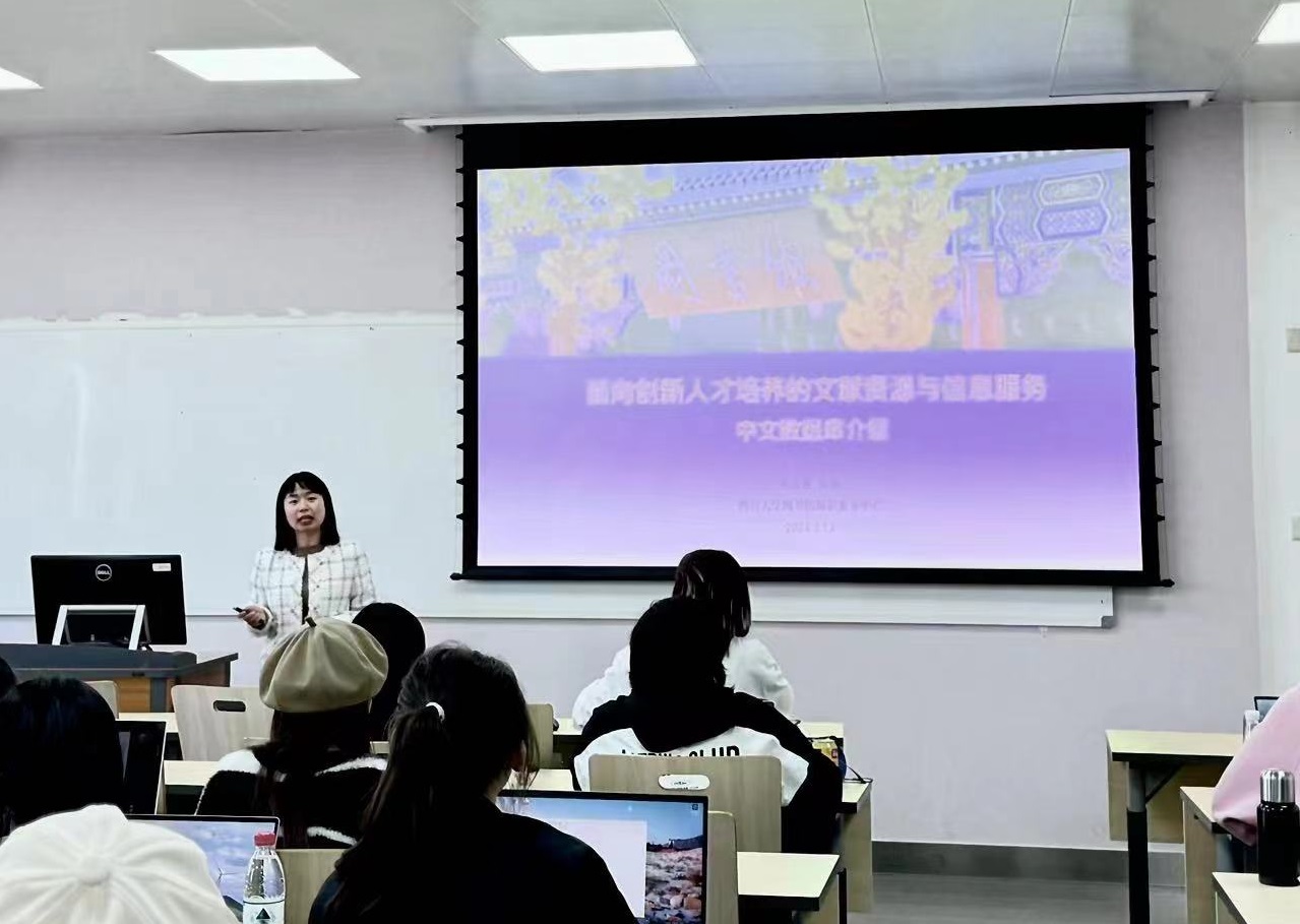 王圣洁老师介绍了“SCIE(ISI)”、“EI”等在内的英文数据库资源及相关搜索、翻译技术,同时对搜索引擎、文献管理软件及与服装专业相关的艺术类网络资源等方面的知识进行了补充阐述。在进行演示讲解之余,王圣洁老师请每位同学以“功能性服装面料”进行文献检索并给予现场答疑指导。