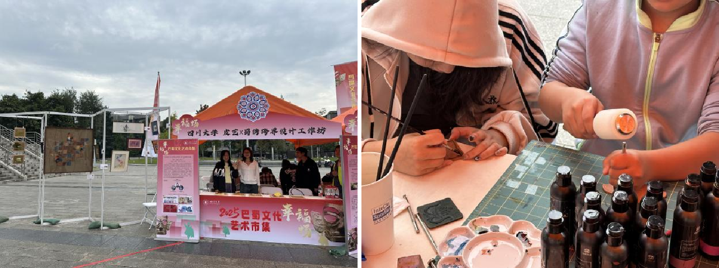 望江校区体育馆举行,现场人潮涌动、氛围热烈。工坊师生带来了多件融合传统与现代美学的皮革与蜀绣跨界设计作品,吸引了众多师生与市民驻足欣赏与体验。