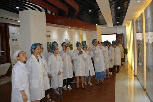 在简短的介绍与对企业了解之后,全体同学进入到的是文化展览馆参观。在此主要给同学们讲述了郫县豆瓣的由来、历史,及其发展,以及影响力等。同学们和老师在专业人员的讲解下,对川菜之魂——郫县豆瓣有了更加深入的了解。紧接着来到了公司的生产车间,该车间有着先进的设备进行全自动的生产,大大的实现了现代化的高效运行。紧邻生产车间的就是仓库,简单的参观之后,大家便一同前往郫县豆瓣晾晒区。晾晒区更是有斥资3000万的自动化设备,以满足郫县豆瓣的日晒要求。随后依次参观到了豆瓣的发酵区,以及原材料辣椒的发酵池。独特领先的匠人工艺以及不忘初心的企业精神使之成为郫县豆瓣的龙头企业。