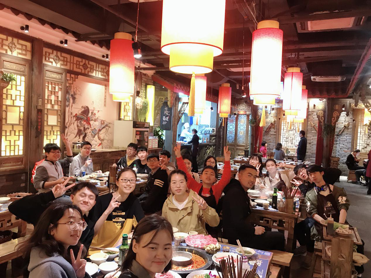 31日午间,赵志峰副教授和204班的同学们到达了位于东郊记忆附近的集合地点,并进行了团体建设活动的第一项内容——班级聚餐。为了让大家能获得一个轻松愉快的交流氛围,大家选择了极具四川地方特色的火锅作为此次聚餐的主题。伴随着火锅汤料的沸腾,同学们和老师之间的交流也越发热络起来,大家对彼此的了解更为深入了。