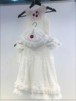 以上系列连衣��设计师罗屹瑶�草莓为主��白色为底色,���多种不同质地的同色面�辅料���红线刺绣�绗缝�手法,使�系列�服饰�主题突出�层次分明��小女孩纯�可爱的特�充分展现�