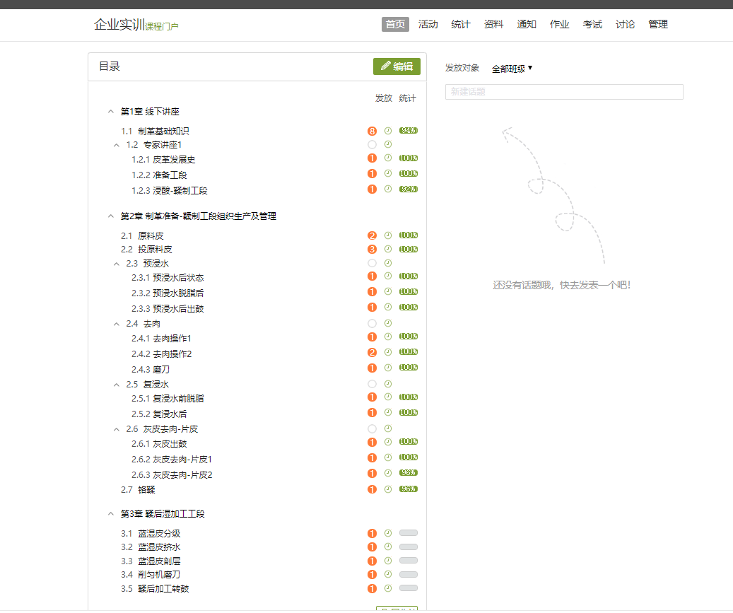 �8 指导教师在线指导学生 �9《企业实训》课程门�