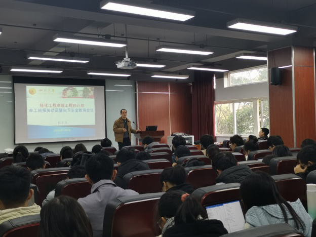2020�1�6日,生物质与皮革工程系在215报告厅举行了2017级轻化工程卓越工程师班动员会�2017级本科生、系领导、辅导员老师和实习指导老师参加了会议,会议介绍了我系多年来卓工班的活动情况,鼓励学生将理论与实践相结合,积级参与卓工计划,培养实践动能力。同学们积极响应并踊跃报名,先后�41名学生参加了卓工班�
