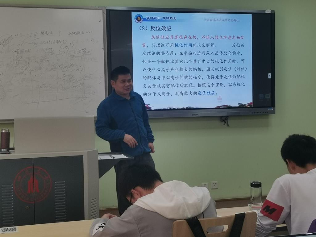 在讲授生皮组织学和铬鞣等章节时,但老师自然的引入了哲学思想,培养学生科学分析问题、解决问题的能力。例如讲授铬鞣时,但老师讲解了“万物皆有联”的重要哲学思想,引导学生深入理解影响铬鞣效果的三因素,这三因素相互联系、相互依存。客观存在的物质影响、方式方法影响和外界作用力的影响分别对应着材料、铬鞣工艺条件和机械作用对铬鞣效果的影响。