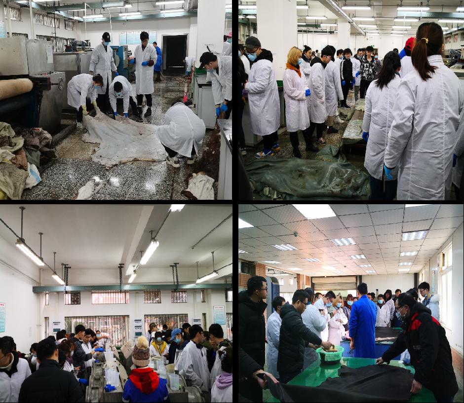 轻化工程专业皮革生产实习于2020年12月27日正式开始,2018级80名同学和1名来自企业的进修人员参加了此次实习。《皮革生产实习》课程是轻化工程专业(皮革方向)专业核心课程之一,是培养实践能力、动手能力、团队协作、理论联系实际能力的重要平台。本课程在制革专业知识体系构建中起着承前启后的作用,学生完成《制革工艺学》课程学习之后开展实操,后期还将继续学习鞣制化学、皮革化工材料、皮革机械等专业课程。