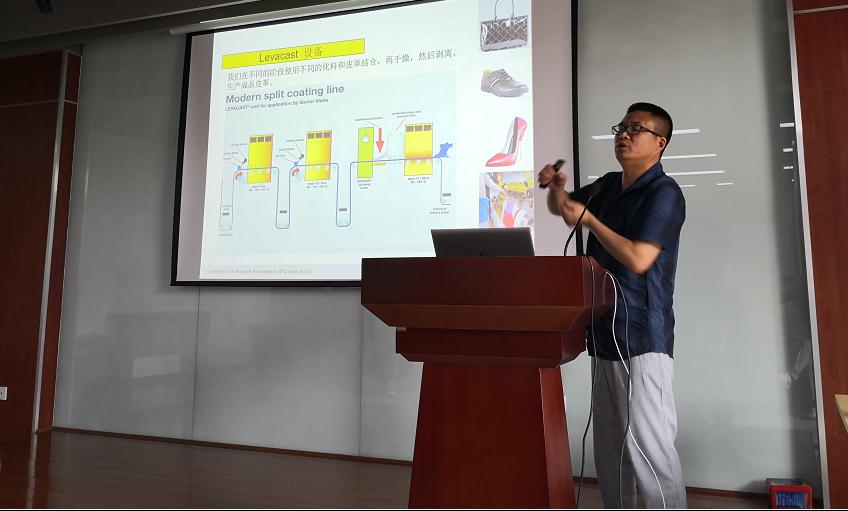 2021�7�12�-15日,应我院教学副院长彭必雨教授邀请,德瑞皮革科技(青岛)有限公司西区经理汪纪力、高级技术代表邝勇一起主讲了《现代制革工艺技术及材料》。二位老师首先给同学们讲解了无(低)硫脱毛技术、无铬鞣制革技术等清洁生产技术的最新研究结果;然后分类分享了防水皮革、高物性皮革、军用皮革等功能性皮革的性能特点及制造工艺;并介绍了漆皮、油蜡革、二层移膜革等涂饰技术的现代创新;最后介绍了当季皮革制品的流行趋势。二位老师授课严谨、幽默风趣,默契互动配合,现场“较劲”技术和经验,在轻松的氛围中引导学生培养分析问题和解决问题的工科思维能力,给同学们带来了一场“传统与时尚结合,科学与技术并重”的皮革技术享受,取得了良好的教学效果�