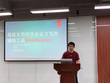 望江校区皮革楼215报告厅开展了一场关于“NoteExpress文献管理软件使用方法”的讲座。参加本次活动的主要人员有服装与服饰设计专业毕业年级学生、毕业论文指导教师,讲座由系主任杨璐铭教授主持。