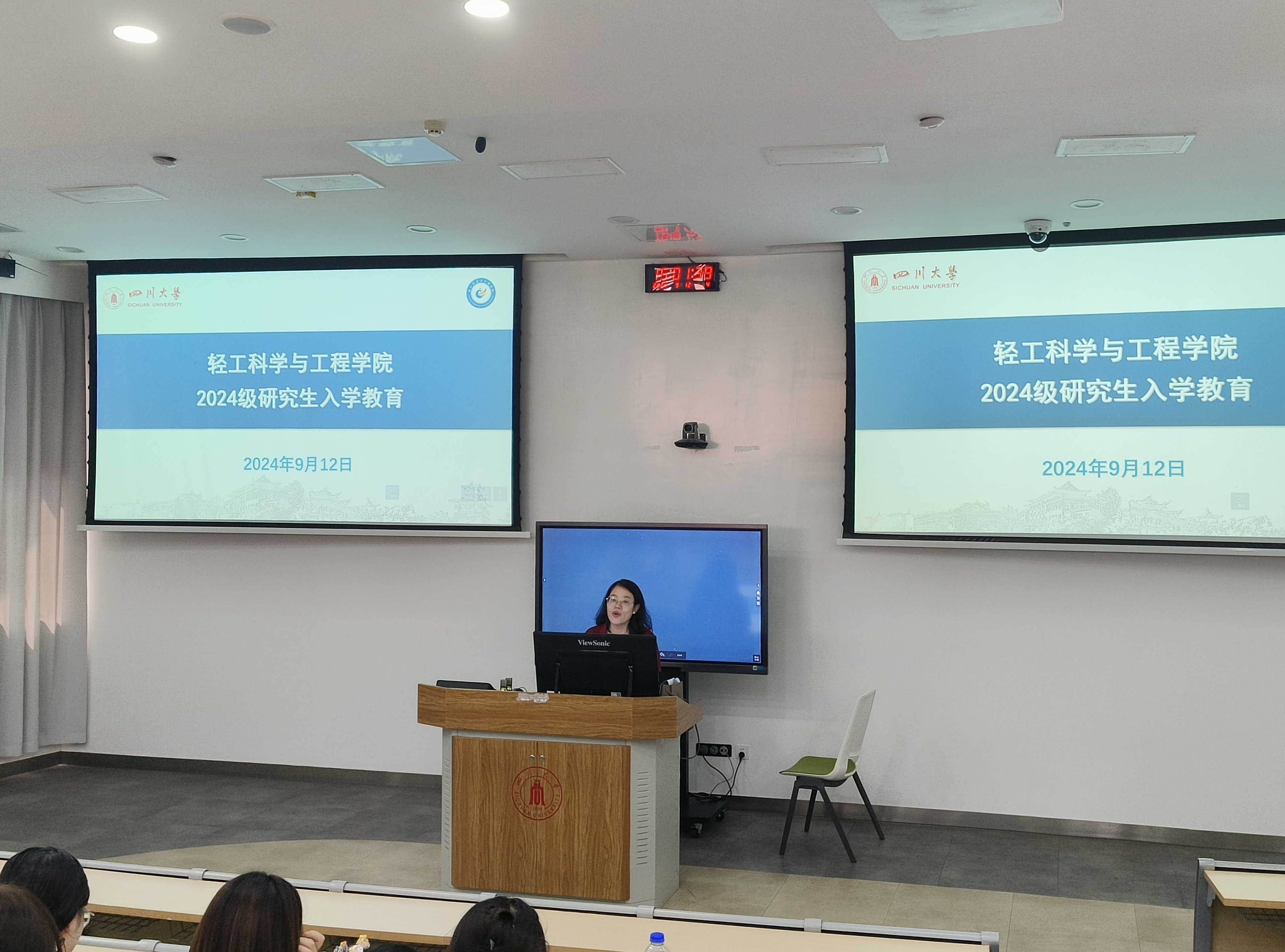 为明晰研究生阶段各项关键事宜,学院于2024年9月12日在基教C202教室举行了入学教育。参加入学教育的嘉宾有,人才培养与科研管理办公室副主任徐雅琳老师,生物质与皮革工程系高级实验师张金伟老师,学院团委书记、研究生辅导员王舒灏老师及2024级研究生辅导员尚娇娇老师,2024级全体研究生参加了本次活动。入学教育由尚娇娇老师主持。