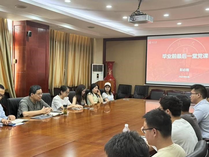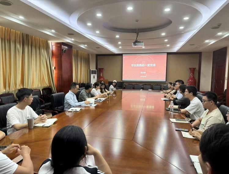 院长彭必雨教授在皮革楼209会议室为2025届毕业生党员代表讲授了毕业前“最后一节党课”。学院姜新副书记、2025届本科生辅导员贾欣驹老师、研究生辅导员付润芳老师和毕业生党员代表参加了此次活动。