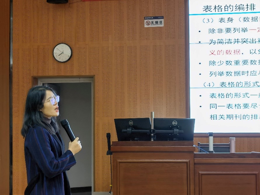 本次课程,尚娇娇老师向同学们详细讲解了学术写作上单位、物理量、插图及表格的正确运用方法,采用概念+举例的形式,将枯燥的文字信息转化为了生动的例子说明,加深了同学们对于学术写作的理解与认识,以规避学术写作中最易出现的基本错误,进一步规范学术写作标准。在课中,尚娇娇老师也多次提到学术研究及写作离不开诚信道德,同学们都应当以诚信为基本要求,规范学术行为。