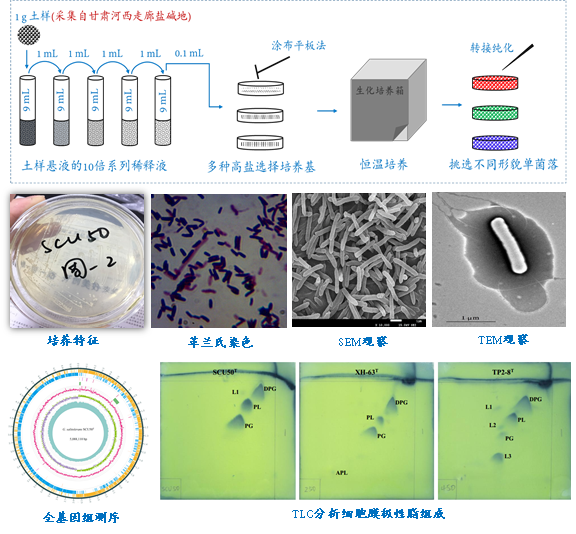 图1. 嗜盐菌株SCU50分离纯化及多相分类鉴定