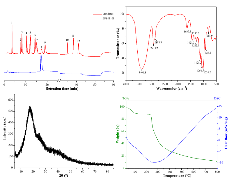 图2. 芽孢杆菌SCU-E108胞外多糖结构表征