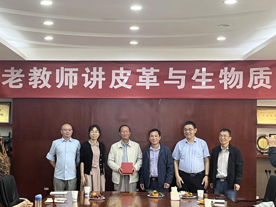 主办,生物质与皮革工程系和四川省皮革学会(老龄科技工作委员会)共同承办的“老教师讲皮革与生物质”主题座谈会于9月28日上午在皮革楼209会议室举办。参加座谈会的有学院党委书记李天富,院长彭必雨,副院长周建飞,党政办公室主任/离退休党支部书记李慧,生物质与皮革工程系主任、四川省皮革学会理事长林炜,生物工程教研室主任秦久福,四川省皮革学会秘书长贾雨蒙以及10余位皮革系离退休教职工。本次会议由生物质与皮革工程系支部书记、四川省皮革学会功能型党支部书记/副理事长/老龄科技工作者委员会主任李正军主持。
