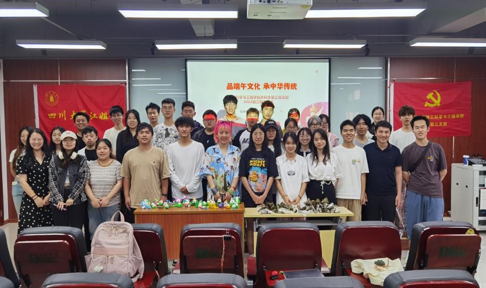 本科生第三党支部联合学院2022级江姐班,于6月7日下午3:00在望江校区皮革楼215开展了主题为“品端午文化 承中华传统”的联学联建活动。