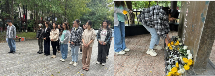 望江校区革命烈士纪念碑前开展了“缅怀革命先烈,告慰革命英灵”主题党日活动,本次活动除了支部成员,发展对象和入党积极分子也积极参与。