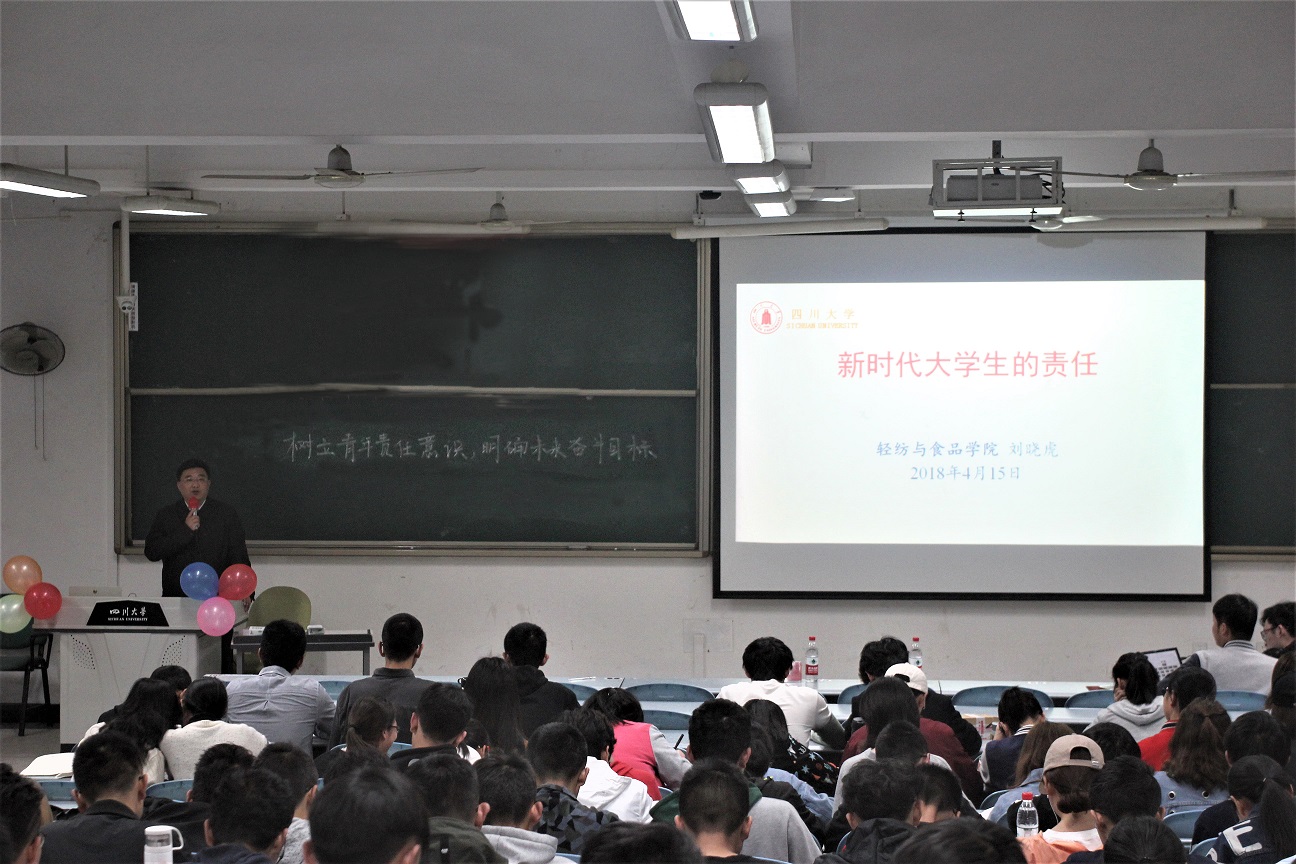2018年4月15日晚,轻纺与食品学院党委书记刘晓虎副教授以“新时代大学生的责任与使命”为主题对羞羞漫画