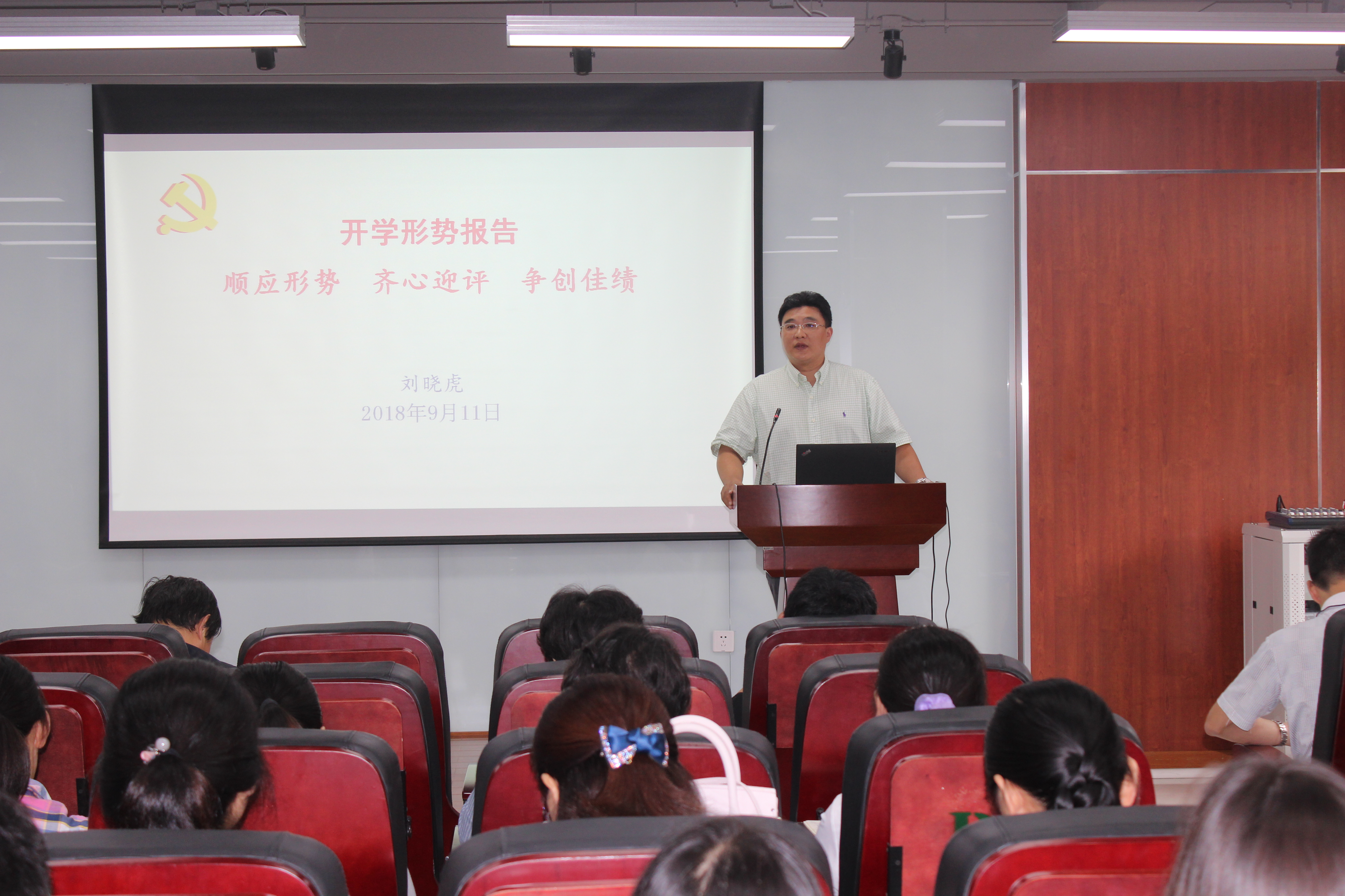 2018年911日下午三点,学院在皮革楼报告厅召开全院教师大会,学院党委书记刘晓虎代表学院党政向全体教师做了开学形势报告。