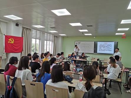 再次,就是激烈的辩论赛决赛板块。主持人先带领大家回顾初赛、半决赛历程,本次决赛辩题是:新闻报道中,还原事实真相更重要还是保护当事人隐私更重要?比赛开始前,首先刘书记分享了自己对本支部的了解情况,他说,很高兴能够参加刚刚被学院评委“优秀党支部”的基层组织参加活动,他强调,评审时看到本支部申报材料时留下了深刻印象,对本支部有了初步认识——“认真、踏实”,即工作认真踏实,今日来参加活动后,发现日常活动丰富多彩而创新,既有学习内容又有实践活动。接着他就今天参加组织生活的原因与目的与大家进行了分享。一是将学校好的政策带到支部,比如鼓励党员们积极参与学校的国际交流活动、多多参与学校的培训班,提高深造率等;二是观摩参与到基层组织的日常活动中;三是将支部做得好的方面带回学院、乃至学校广为宣传。最后希望本支部继续保持目前的工作状态与氛围,党员们做好表率带头作用,祝愿支部越来越好。