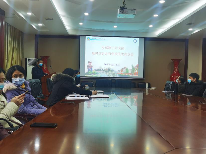 皮革教工党支部在皮革楼209会议室召开了组织生活会和党员民主评议会。会议由皮革教工党支部书记李正军主持,皮革系全体党员同志参加了此次会议。