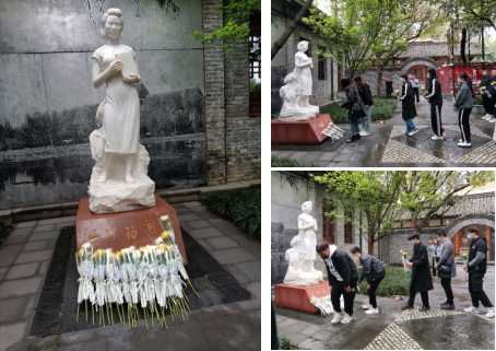 擎天翠竹迎霜筠,锦江红梅傲雪开。皮革研究生第四党支部齐聚在江姐曾经学习生活过的地方,循先辈足迹、铭历史印记,深切缅怀革命英烈的英勇事迹,传承弘扬优良革命传统,共同参加了一场“祭奠先烈,寄托哀思”的专题活动。习近平总书记说,一个有希望的民族不能没有英雄,一个有前途的国家不能没有先锋。民族英雄是中华民族的脊梁,他们的事迹和精神都是激励我们前行的强大力量。革命先烈的红色革命精神,需要新时代的我们进行传承和发扬,处于和平年代的我们更应该做一个具有文化自信与使命担当的时代新人。江姐为革命奉献一切的事迹,让大家深切感受到了信仰的力量,也早已融贯于内心深处,这种力量会激励我们坚定传承红色基因、时刻铭记初心使命,学以致用,报效祖国。在日常学习和工作中,把对革命英烈的深切怀念转化为做好工作的强大动力,追思历史,方能笃定前行。