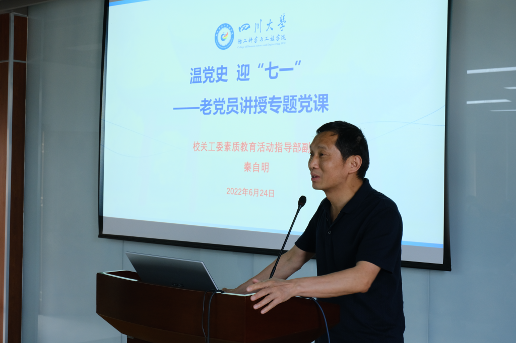2022年6月24日下午,学院在皮革楼215报告厅组织开展了“温党史 迎七一”专题党课讲授活动。为加强校院关工委与学院青年教师、青年学生的联系与交流,本次活动特别邀请到校关工委素质教育活动指导部部长曹养书,副部长梁明征、秦自明和傅师申等老党员同志莅临学院讲授党课,学院公共服务教工党支部、学生党支部代表受邀参加本次会议。会议由学院离退休教工党支部书记李慧老师主持。