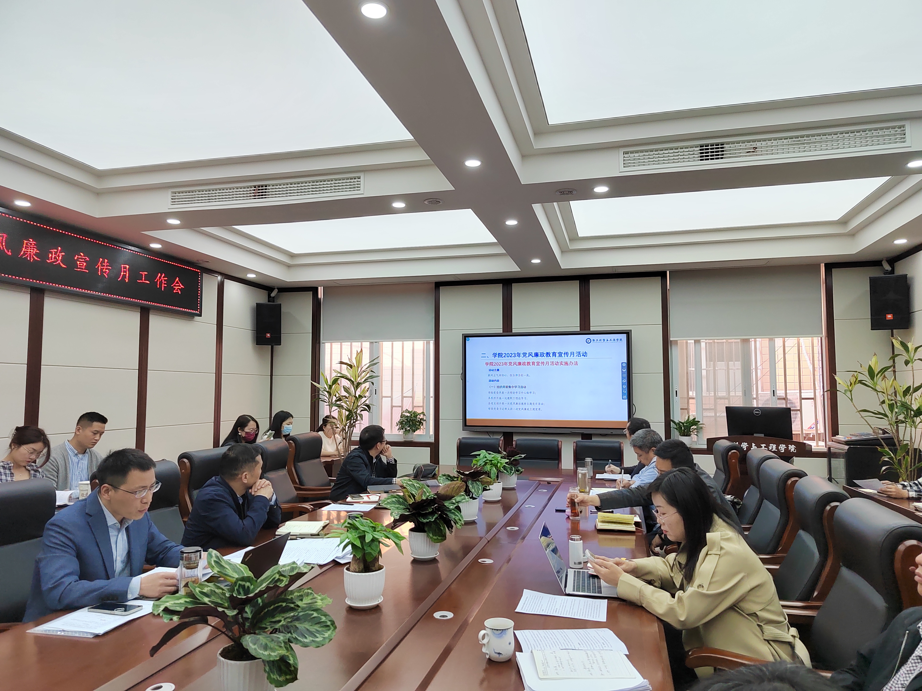 2023党风廉政教育宣传月工作会上,冯国涛副书记首先围绕“新风正气润初心,担当作为创一流”的主题介绍了学院2023年党风廉政教育宣传月活动实施办法,并要求院内各单位、各党支部要将党风廉政教育宣传月活动与师德师风、科研诚信、学术诚信教育等贯通融合,并与学科专业建设、师资队伍、人才培养等工作统筹协调、一体推进,并力戒形式主义、官僚主义,确保活动取得实效,最终形成常态化、长效化党风廉洁教育机制。