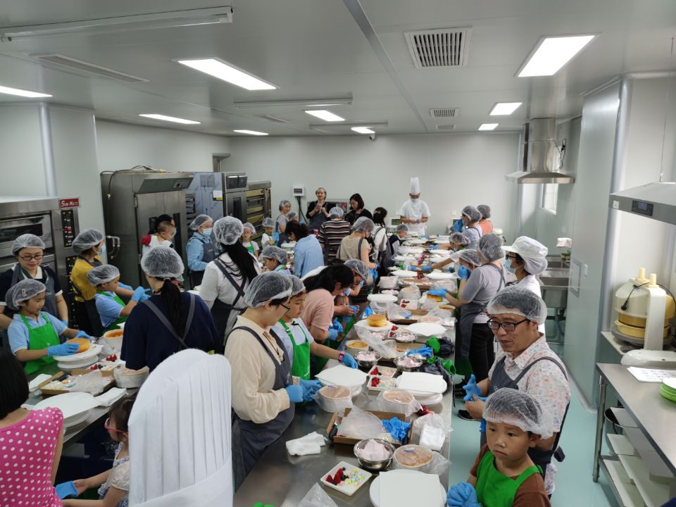 分工会承办的“甜蜜一夏 乐享六一”亲子蛋糕制作活动在纺工楼107食品烘焙实验室举办,活动吸引了30组家庭参与。