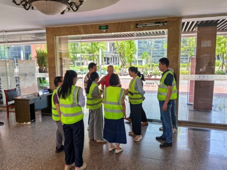 2025应急疏散演练于6月10日下午14点在皮革楼举行。演练开始前,学院分管副院长周建飞召集学院安保工作小组成员布置任务,指示大家务必按照实战要求完成演练。
