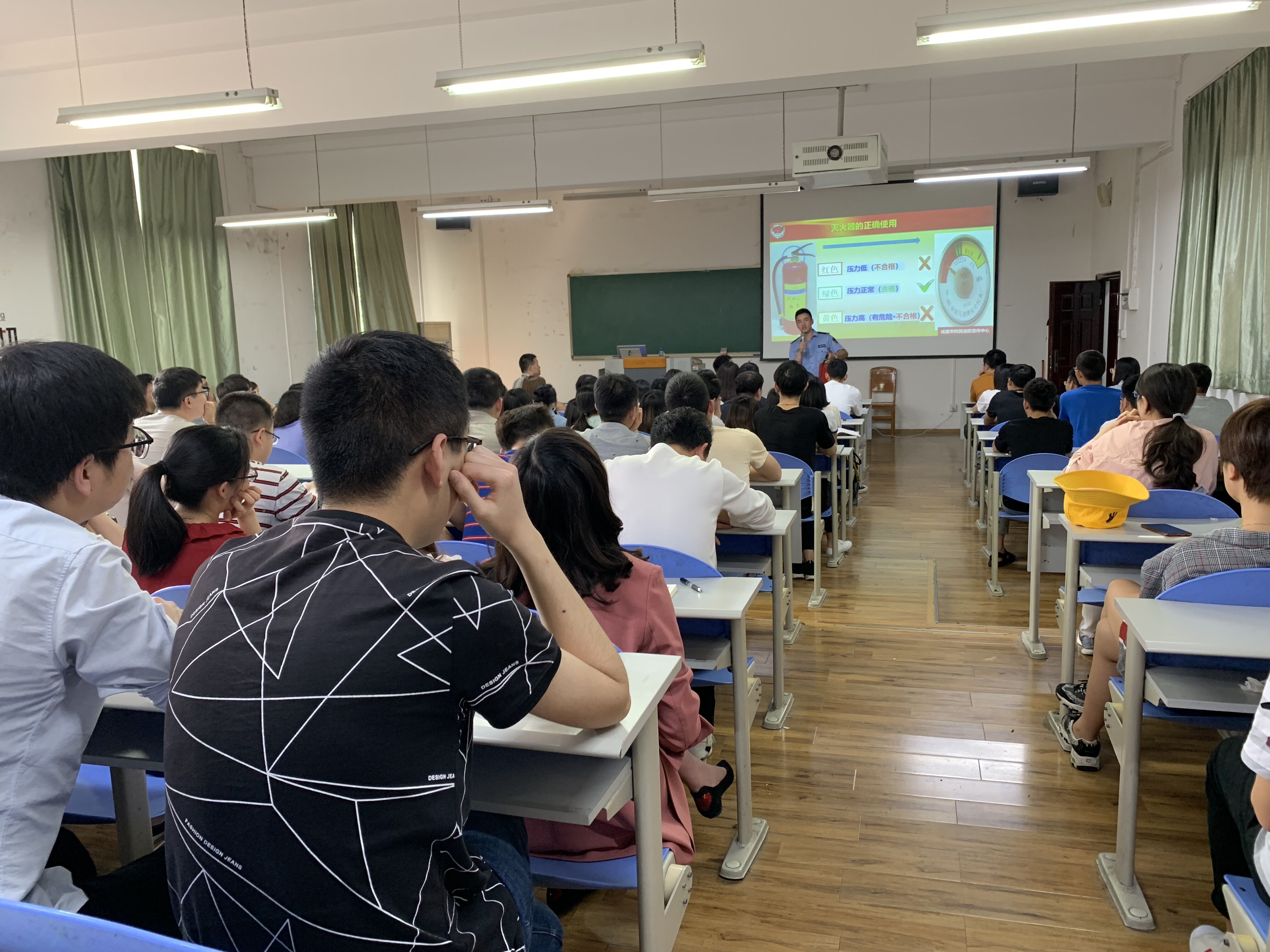 本次培训会由肖凯副院长主持,肖院长首先强调了实验室安全管理、消防安全的重要性;同时对近年发生的实验室安全事件进行了通报,希望以此对同学们有警示作用;最后肖院长也提出了明确的实验室安全管理及消防要求。接下来,培训中心的张教官以生动有趣的言语讲解了消防平常检查以及疏散逃生的基本常识、消防火灾的应急和预防、消防器材的正确使用方法等,并结合生活中的实际情况,详细讲解了发生火灾后的自防、自救、逃生技能。针对同学们平时对于消防方面的错误观点进行了点拨和纠正。之后通过案例分析,视频讲解等方式,用触目惊心的画面和数字使全体参训同学在消防安全意识上受到了极大的冲击,深刻认识到了“隐患险于明火、防范胜于救灾”的重要性。最后,到场同学就实验室可能出现的消防安全问题与张教官进行了充分的交流,张教官的解答让在场的同学获益匪浅。
