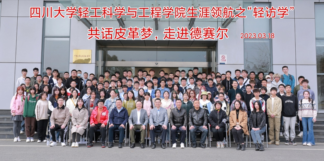 四川德赛尔新材料科技有限公司成立于1994年,总部位于四川省德阳市,是一家集基础研究、应用研究、服务性制造的科技型新材料公司。德赛尔以研发皮革助剂、加脂剂、复鞣剂、酶制剂、涂饰剂为专长,为客户生产提供各种通用的高品质皮革。在公司讲解老师的分组带领下,同学们先后参观了公司行政区、研发中心、技术应用中心、检测中心与产品展览室,同学们借此机会了解到现代制革企业的产品开发设计、生产和技术应用创新模式,以及皮革产业链等行业相关信息。