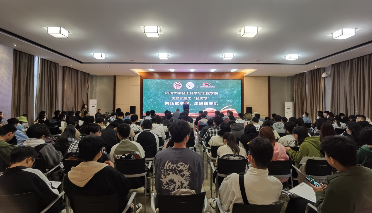 在公司工作多年的研发工程师、技术骨干等与同学们开展了“共话皮革梦,走进德赛尔”主题交流分享会。首先,公司总经理助理吴璐璐为同学们介绍了公司整体情况及德赛尔服务探索之路。接着,公司三位杰出校友——研发总工曾少余、产品线经理龙进、水厂研发经理孙青永博士分享了公司在皮革研发和皮革应用方面的思考,以及自己对工作的思考,也为同学们的生涯选择提出了建议。随后,学院党委冯国涛副书记进行了讲话,冯书记首先对德赛尔公司为此次访学活动提供的大力支持表示感谢,并谈到此次活动的开展加深了同学们对行业的认识,为大家做好未来职业发展规划提供了更清晰的认识和新的思考。最后,公司总经理丁学东进行了总结讲话。丁总勉励同学们,“大学是从考场到职场的转变,大学四年不仅应该深入扎实学好专业知识,更要为自己的未来职业规划做好充分思考和准备,同时职业规划很重要,既要仰望星空,也要扎根基层。”