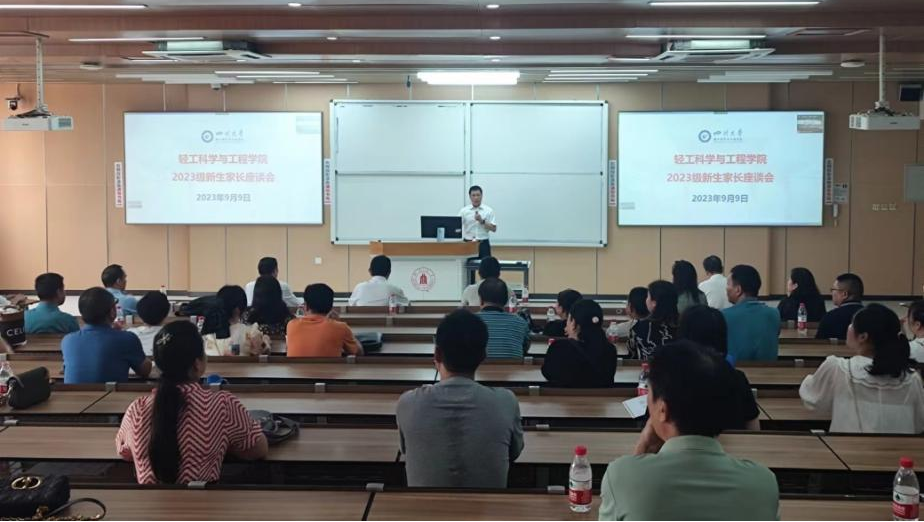 随后�院长彭必�教授�学校和学院办学历��学院师资队伍和人才结构、专业与学科设置�专业历史沿革、组织架构和平台资源�多个方面详细�向全体新生家长介绍了学校和学院的基本情况�彭院长指出,四川大学以及轻工科学与工�学院为学�提供了一流的学习条件和成长环境,是优秀学子实现梦想的地方,期望学生成长�国际栋梁和社会精英!