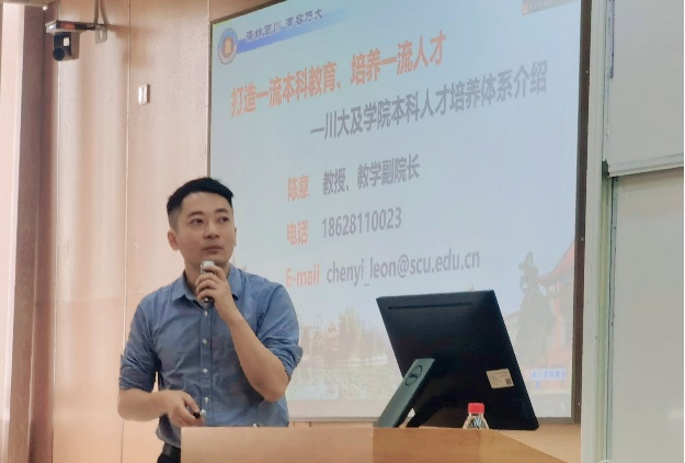 副院长陈�教授向家长们�学院教育教学工作进行了解读,重点介绍了学生家长比较关心的创新班人才培养模�。陈院长�自己在四川大学轻工工程与科学学院本硕博的求学经历以及十多年的教学经历向家长表示,孩子选择在四川大学轻工科�与工�学院学习一定能收获颇丰�
