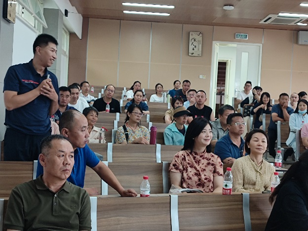学院党委冯国涛副书记从大学生活特点、学习特点、管理特点向全体学生家长介绍了针对学生的日常管理要求,并给学生家长提出了高度重视大一新生的三个转变,密切加强家校联动�“三个一”以及密切保持与学校人才培养目标同向同行�三点具体建议�并号召家长们与学校携手同行,共同助力学生成长成才�