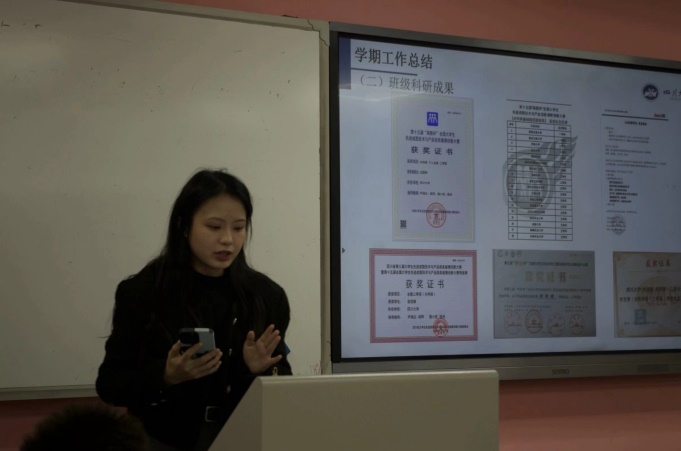 随后,水利水电学院2020级江姐班团支书卫佳怡学姐和空天科学与工程学院2020级江姐班团支书蔡鑫宇学长作为老江姐班代表分享江姐班的建设经验。卫佳怡学姐从成绩与科研成果、红色基因传承、班级建设思路三个方面进行分享,强调大家在班级建设中注重的“团结协作、求实创新”的理念。蔡鑫宇学长从志空天、敢争先、兴人文、树标杆四个方面分享了班级建设经验,并列举了一些成功的文化活动和学术交流活动的案例,激励同学们勇于尝试,勇于创新,勇当标杆,为班级发展注入新的活力和动力。他们的分享不仅对未来的江姐班建设提供了宝贵的经验,也给了同学们很多启发和指导,为2022级轻化工程专业103班江姐班的建设提供了蓝图范本。
