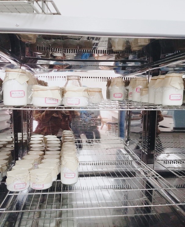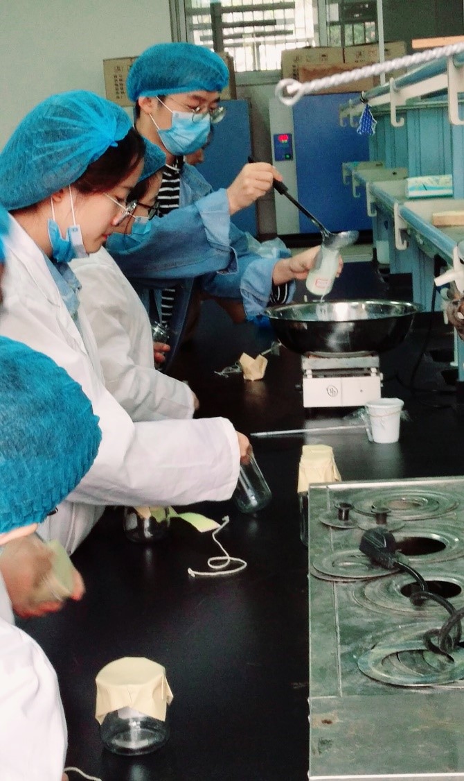 下午15:00点,理论讲解结束。同学们陆续来到实验室开始酸奶的制作。无论是酸奶实验小白,还是预实验的工作人员都能在老师的理论的指导下顺利地完成酸奶制作。参与活动的四位老师也沉浸在与学生们一起制作的快乐之中。