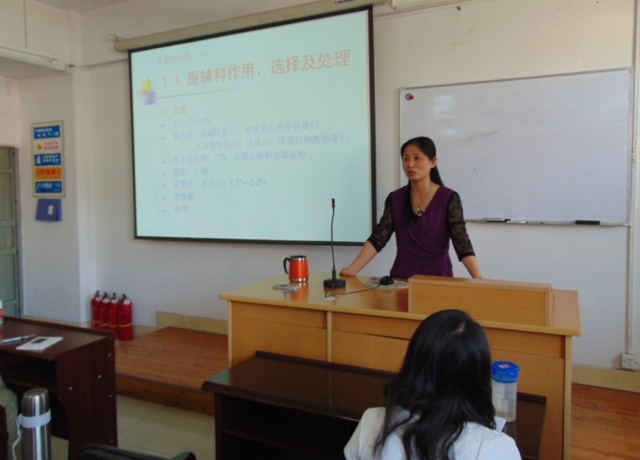 下午2时30分,培训会正式开始。首先,吕远平老师为大家介绍了本次培训会的目的与意义,希望同学们能通过这次培训会学到真正有利于自身学术发展的知识。接下来吕教授按照烘焙的步骤顺序,从原料的选材、配料的作用、发酵的过程、烘焙的工艺等几个方面详细地为大家解析烘焙面包过程。吕老师还从现有条件入手,结合各种实例以及前几年比赛的经验,为同学们提出了许多蛋糕与面包制作过程中具有操作性的建议。在后续的互动环节中,无论是操作时出现的情况或是具有创新性的构想,吕老师都用严谨的理论知识给出了合理的解释和建议。最后,培训会在同学们的一片热烈的掌声中落下帷幕。