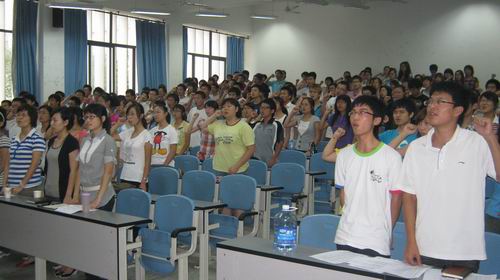 学院分团委副书记李晓秀老师首先结合学院迎新工作的整体部署,向学院各位迎新志愿者细致介绍了迎接2010级新生的各项流程,再次明确了迎新志愿者的工作职责,并针对迎新过程中可能遇到的问题提出了具体可行的解决方案。此外,为了能够更加出色地完成迎接新生工作,李晓秀老师还对志愿者的礼仪和纪律两个方面进行了强调。然后在场志愿者全体起立,在志愿者代表杨灵燕的带领下,进行了铿锵有力的宣誓。宣誓过后,学院分团委组织部执行部长孙海霞同学对参加学院寝室支部助理活动的09级同学进行了政策宣讲,并对寝室支部助理近期的工作进行了总体阐述。最后,学院分团委书记祝蔚老师勉励大家延承羞羞漫画
