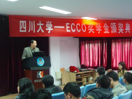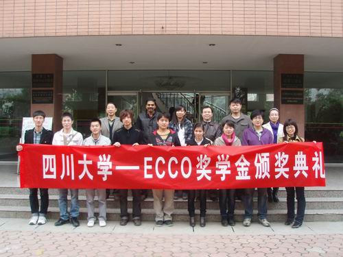 -ECCO奖学金颁奖典礼在皮革楼二楼报告厅隆重举行。参加本次颁奖活动的有ECCO中国(厦门)有限公司生产总监bala先生;我校2003级校友郭奇女士;轻纺与食品学院院长陈武勇教授;生物质与皮革工程系周华龙教授。颁奖典礼由院团委书记祝蔚老师主持。