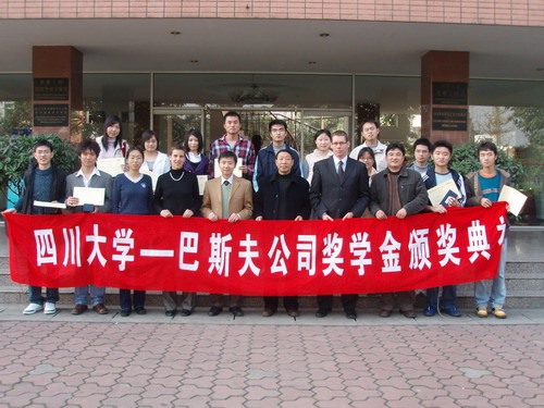 设立奖学金表示感谢,对本次获奖同学表示祝贺并提出了殷切的期望。随后,巴斯夫(中国)有限公司大中华区总经理贝格博士简要介绍了本公司的情况,并勉励获奖同学再接再厉,争取更好的成绩。
