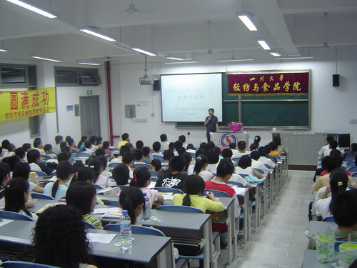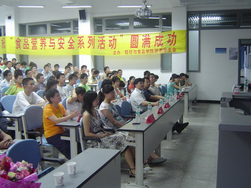 作专题讲座。当晚莅临本次讲座嘉宾还有轻纺与食品学院副院长、食品工程系系主任卢晓黎教授;轻纺与食品学院党委副书记刘晓虎老师;院团委书记祝蔚老师以及06级辅导员段飞霞老师,讲座由院团委副书记冯国涛老师主持。