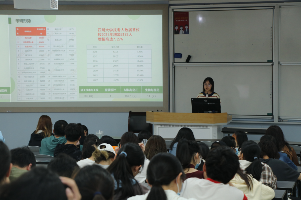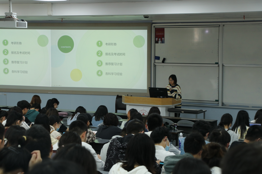 为营造良好班风学风,加强学生对研究生入学考试的认识,帮助学生明确深造目标,激发考研热情并增强考研信心羞羞漫画 思学中心2022年4月8日下午在江安一教B207教室开展“筑梦考研,扬帆起航”考研经验分享会。本次活动特别邀请2018级学生史雅辰钟旭斌作为主讲人,2020级辅导员余昕玲老师和2020级全体本科生参加了本次活动。