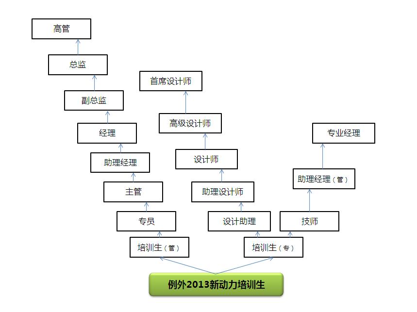 →培训生(管) 专员 → 主管 → 助理经理 → 经理