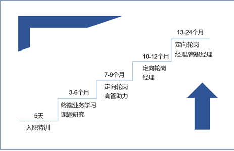 为帮助管培生快速成长,实行“6+3+1”的培养模式,即:60%实践锻炼,30%辅导反馈,10%理论培训,针对成长的不同阶段,公司制定不同成长阶段的培训培养,如:特训营、技能提升培训、定制培训、各岗位在职培训等等,含基本技能、核心技能、专业技能和领导力等内容。