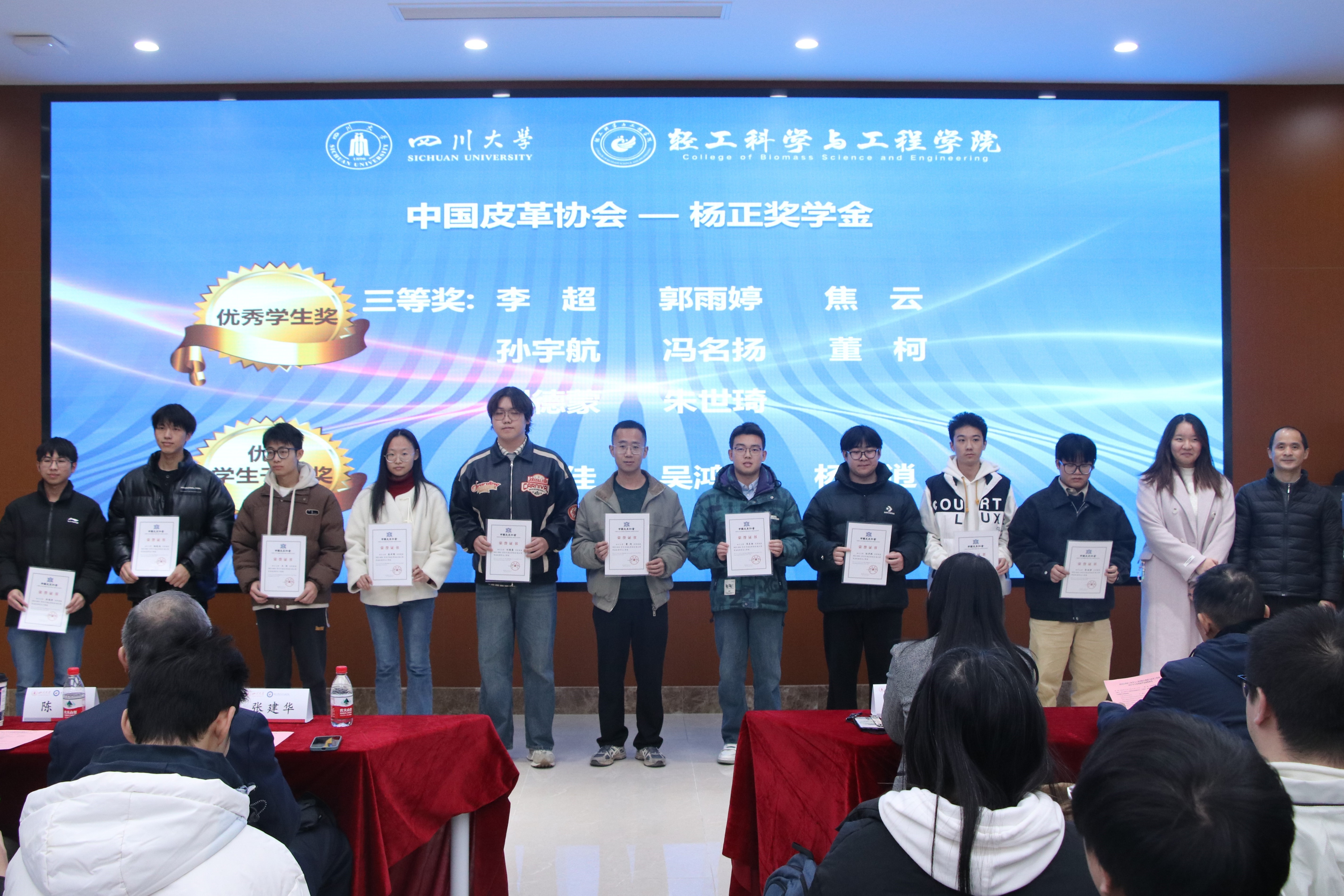 生物质与皮革工程系2024年度专业奖助学金颁奖典礼在一片热烈的掌声中圆满落幕。在此,我们衷心感谢长期以来鼎力支持学校人才培养工作的行业企业以及广大校友。我们期许所有同学在未来的求学道路上再接再厉,不断突破自我,创造更加优异的成绩,为轻工行业的蓬勃发展贡献自己的智慧和力量!
